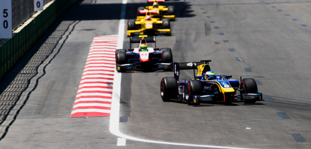 A completare il podio è stato il già citato Latifi, terzo come ieri, il quale ha capeggiato il trenino formato da King, da un buon Sergey Sirotkin (rientrato qui per sostituire l'infortunato Alex Albon alla ART) e dall'altro russo Artem Markelov. Settima posizione per Nobuharu Matsushita, ottava per il nostro Luca Ghiotto, bravo a racimolare un punticino in un fine settimana che era diventato tutto in salita per il crash nella qualifica del venerdì. Tredicesimo invece Antonio Fuoco, che poco poteva dovendo prendere il via dal fondo della griglia.
