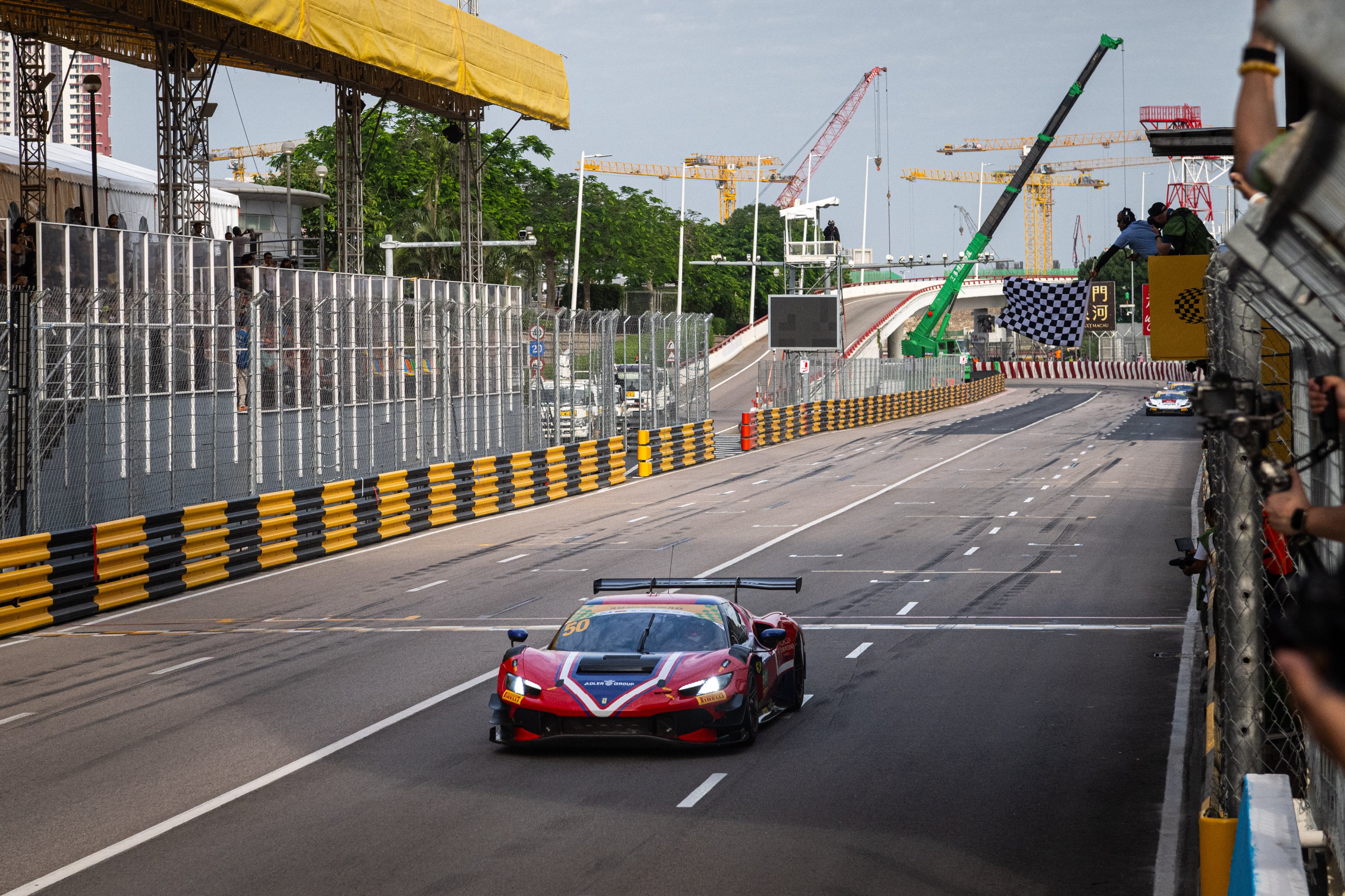 Sulle strade di Macao Ferrari e Antonio Fuoco hanno apposto per la prima volta il loro sigillo nel FIA GT World Cup. Trionfando sul difficile e insidioso circuito da Guia, sia il pilota di Cariati che la Casa di Maranello si sono ripresi quello che la sorte gli aveva sottratto esattamente un anno fa. Un fine settimana perfetto, quello messo in mostra dal team AF Corse, con Fuoco che ha dominato la scena dalla pole in qualifica, passando per la vittoria nella Qualification Race di ieri, fino al successo mai messo in discussione nella gara odierna.