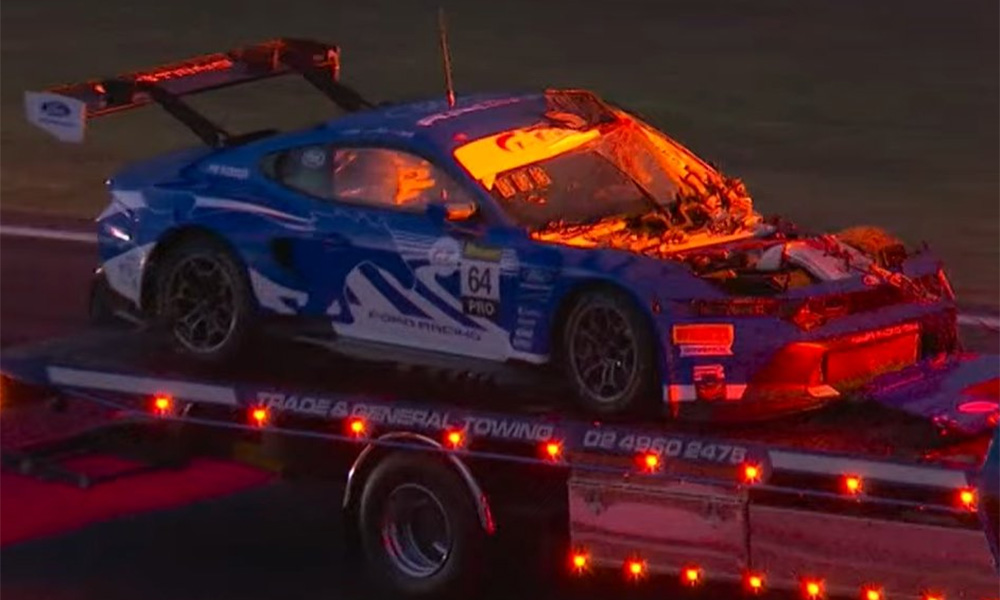 La 12 Ore di Bathurst ha offerto il primo colpo di scena già nel corso del terzo giro, quando la Ford Mustang GT3 di Christopher Mies ha centrato un canguro in piena notte. Visibilmente sotto shock, il pilota tedesco è uscito illeso dalla vettura, al contrario del povero animale. L’impatto ha avuto conseguenze anche per le altre vetture sopraggiunte sui numerosi detriti disseminati in pista. Tra queste la BMW M4 GT3 di Kelvin van der Linde, costretto a rientrare al box del Team WRT per sostituto il muso perdendo terreno.