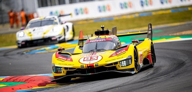Poco prima, la Ferrari AF Corse era uscita indenne anche dal secondo scroscio di pioggia. Pur mantenendo la prima posizione, Kubica è ora sotto investigazione per il contatto. Inoltre l’intervento della safety car ha azzerato il vantaggio della 499P sulla Porsche di Frederic Makowiecki, secondo, e la Toyota di Ryo Hirakawa. Quarto Nicklas Nielsen, Ferrari, seguito dal pilota Porsche Laurens Vanthoor e dalla Cadillac di Alex Lynn.