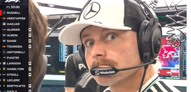 Wood lo ha ripetutto ben due volte al ché, Tsunoda, piuttosto frastornato, ha risposto: "Non so proprio cosa stia guidando Bottas". Con grande tempismo, la regia televisiva si è spostata nel box Mercedes dove Bottas, terzo pilota, seguiva il turno a fianco di Toto Wolff. Il finlandese, futuro pilota Cadillac, si è lasciato andare a una simpatica espressione di incredulità, e si sarà chiesto cosa si fosse mai bevuto quell'ingegnere... Forse troppe Red Bull.