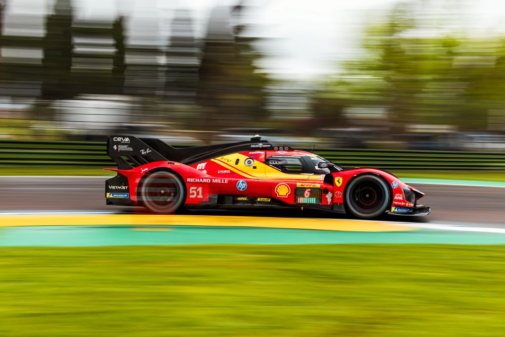 Imola ha accolto i protagonisti del Mondiale Endurance con un asfalto bagnato, per via della pioggia caduta nel corso della notte. La prima sessione del Prologo, lunga tre ore e mezza, è così stata condizionata da un tracciato umido che però si è man mano asciugato lasciando spazio ai team di entrare finalmente in azione. Le Ferrari non hanno perso tempo imponendo subito il proprio ritmo, quasi a voler confermare il peso di essere i campioni in carica del WEC.