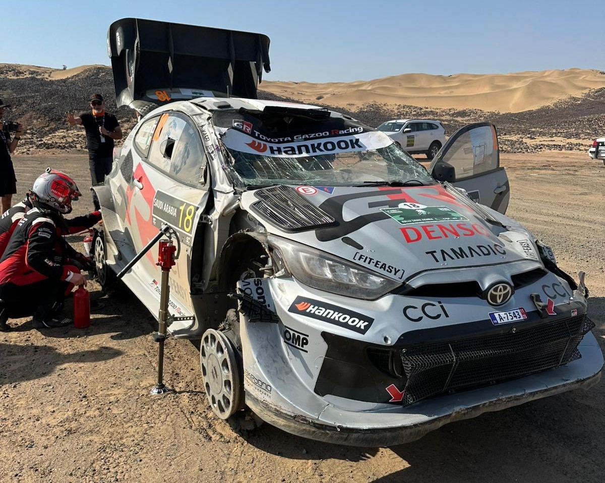 A completare il podio è stato Ogier. Il francese ha improntato la sua gara nel marcare stretto il diretto rivale al titolo Evans. Ogier ha quindi saggiamente cercato di non correre rischi inutili badando a chiudere costantemente davanti al gallese. La fortuna ha poi sorriso ancora una volta al campione di Gap quando, nel corso della penultima speciale, Takamoto Katsuta ha capottato gettando alle ortiche il podio (nella foto sotto). Ma in generale a impressionare è stata la freddezza con cui Ogier ha gestito l’intero fine settimana. Menzione speciale per il suo navigatore Vincent Landais, ineccepibile nell’arco di tutta la stagione e al suo primo titolo iridato.