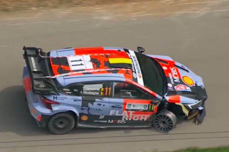 Ma proprio nella Power Stage Neuville ha commesso l’unico errore del weekend. Il belga è arrivato lungo ad un incrocio, la ghiaia ha poi fatto perdere direzionalità alla sua i20N Rally1 che è andata a sbattere contro un blocco di cemento piegando la sospensione destra. Neuville ha provato a proseguire ma, al secondo intertempo, aveva già perso minuti e vittoria. Si è quindi accostato per provare a riparare la vettura, salvo poi ripartire dopo quasi 20 minuti.