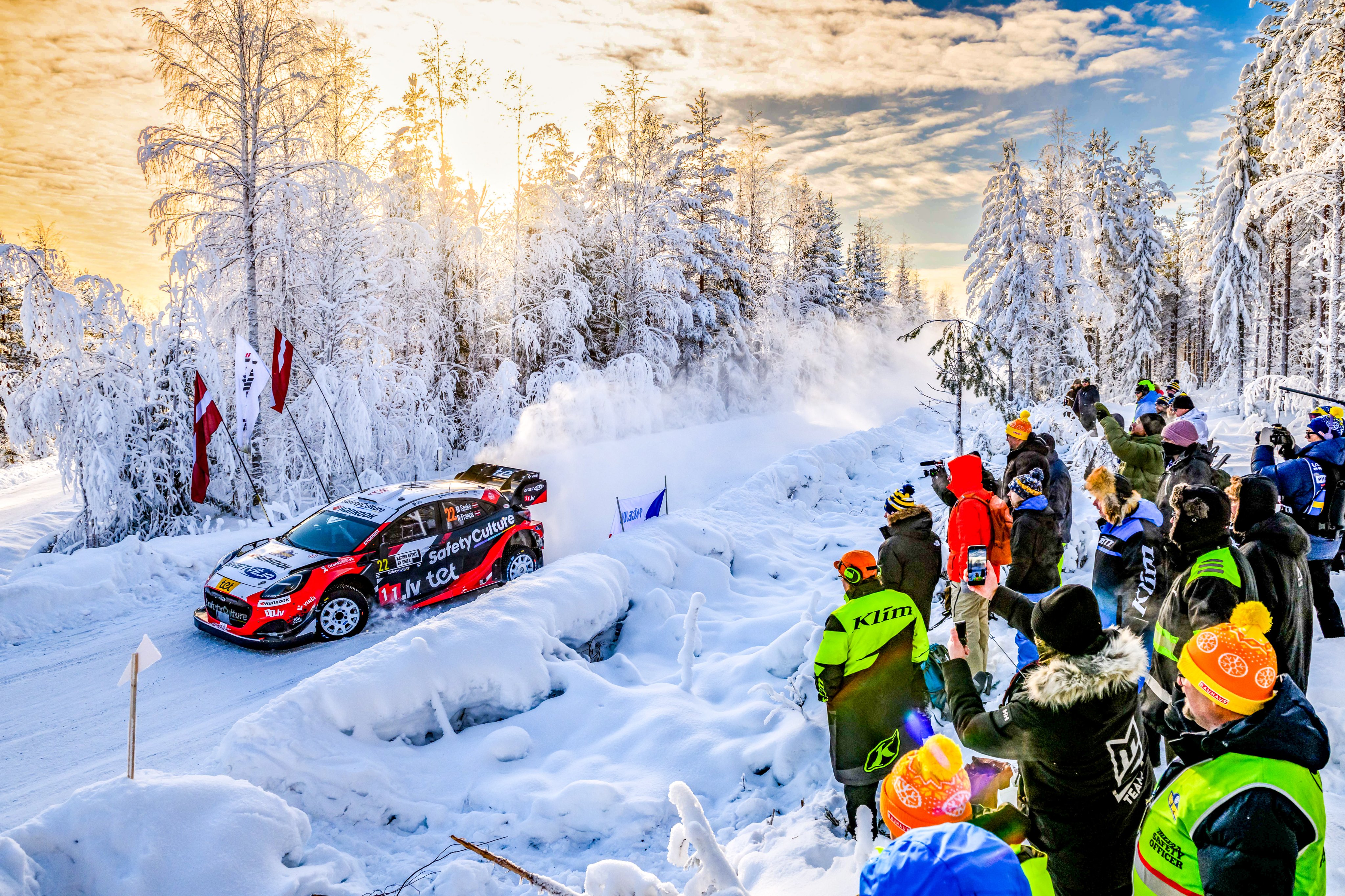 A seguire le Ford Puma Rally1 degli irlandesi Jon Armstrong e Joshua McErlean. Costretto a gettare la spugna per le troppe forature accusate nel corso della mattinata del venerdì, Mārtinš Sesks si è riscattato nel migliore dei modi. Nonostante sia costretto ad aprire le speciali odierne, il lettone ha siglato il riferimento della prova di Sarsjöliden interrompendo il dominio Toyota. Buono il recupero di Lorenzo Bertelli e Simone Scattolin, ora venticinquesimi assoluti.