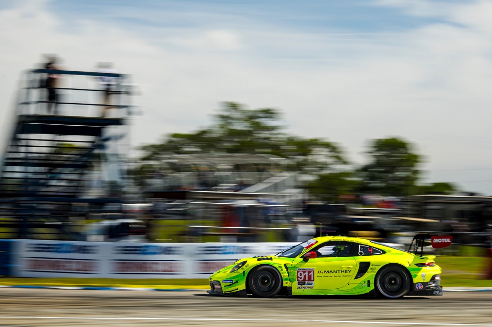 team Manthey guidata da Thomas Preining, Ricardo Feller e Klaus Bachler. Il successo, primo negli Stati Uniti per la squadra tedesca, è arrivato al termine di una gara gestita alla perfezione e con un sorpasso decisivo sul finale. Infatti Preining ha infilato Harry King conquistando la testa della corsa pochi istanti prima della neutralizzazione che ha visto coinvolta la Ford Mustang GT3 di Jenson Altzman.
