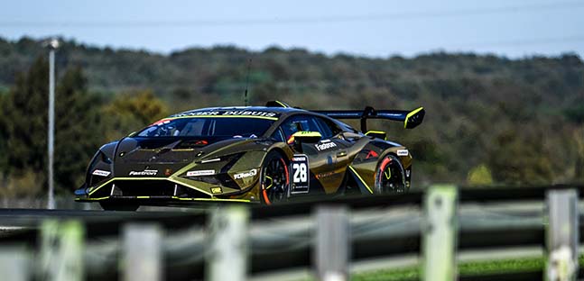 Da Vallelunga – Luca Basso – Foto SpeedyIl lungo weekend del Lamborghini Super Trofeo a Vallelunga è arrivato finalmente al momento clou nella giornata di sabato, ovvero con le World Finals. Nelle qualifiche riservate alle categorie Pro e Pro-Am sono stati Amaury Bonduel (BDR) e Frederik Schandorff (Target) a registrare le due pole position assolute.