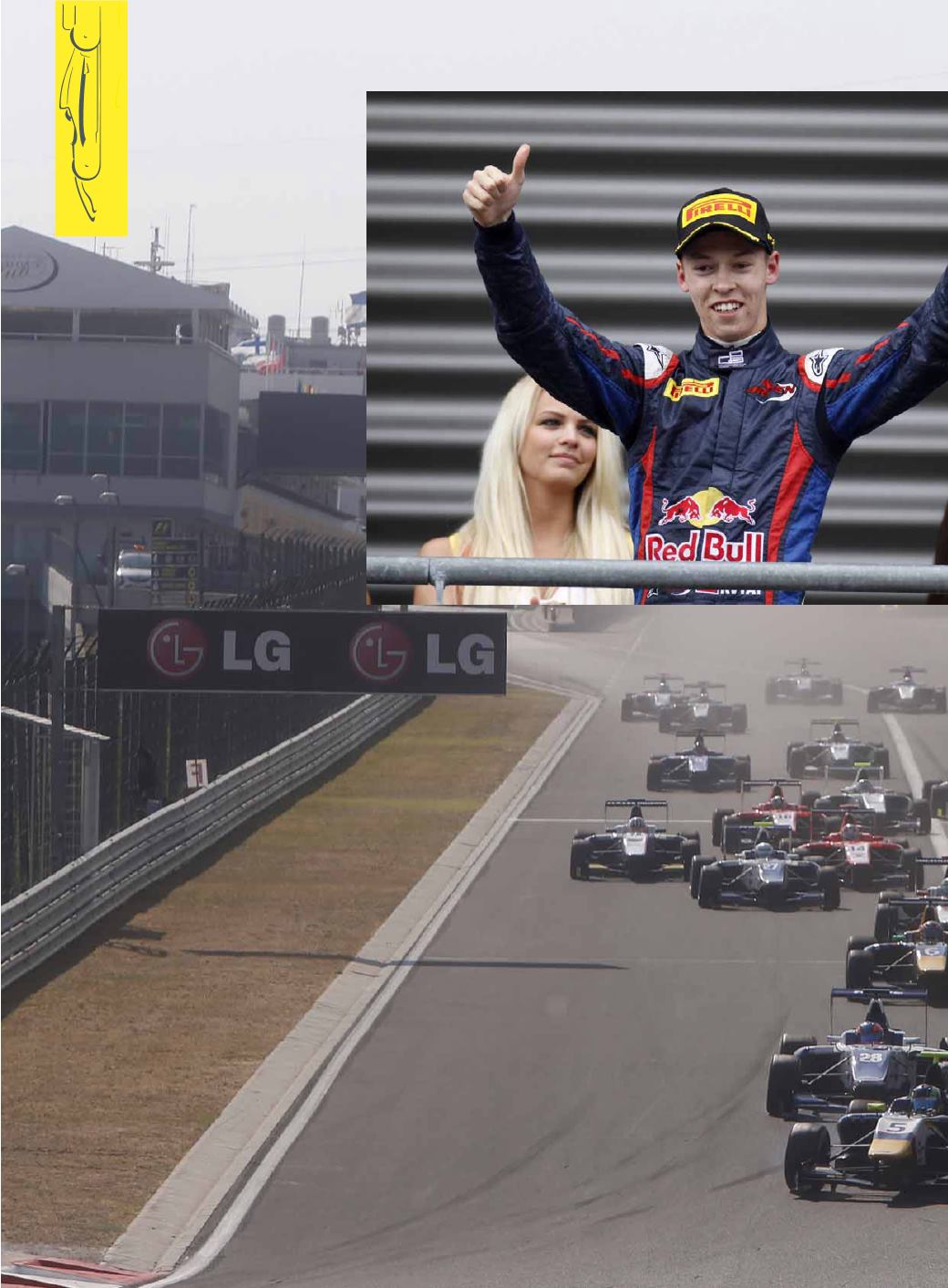 Nelle foto, Kvyat festeggia la prima vittoria, a destra il rientrante Sims complimentato da